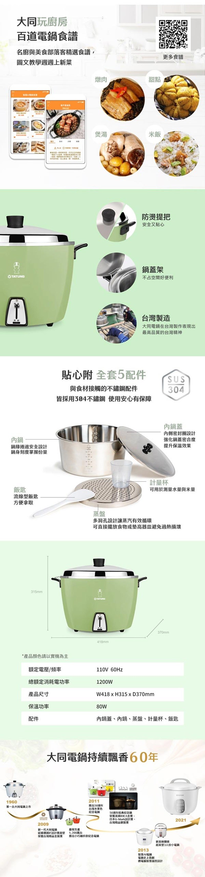 TATUNG 大同 15人份松柏綠不鏽鋼配件電鍋 TAC-15L-NGA