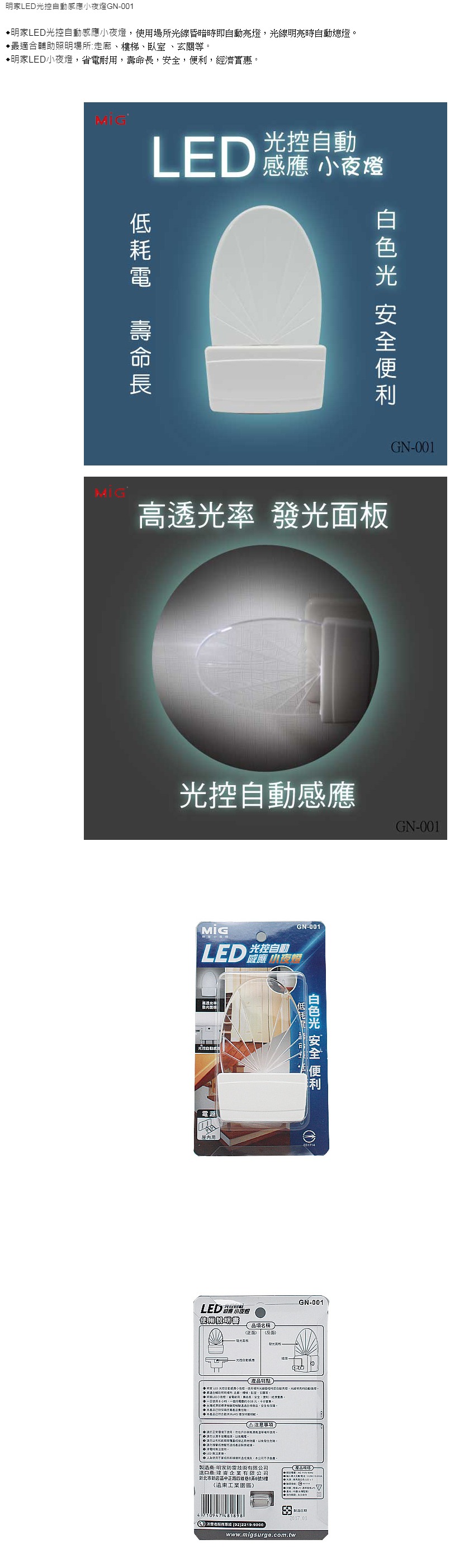 明沛 90度旋轉寧靜自動光感小夜燈 黃光