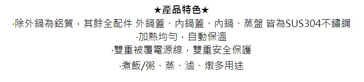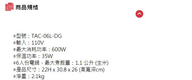 TATUNG大同6人份不鏽鋼配件電鍋 TAC-06L-MCW (沒附內蓋)