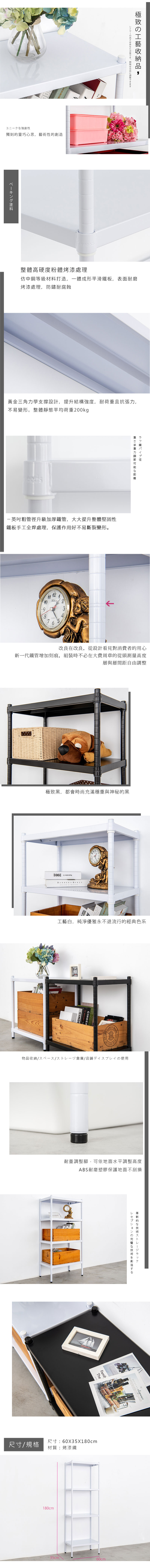 【dayneeds】極致工藝 60x35x180公分 四層烤白鐵板層架