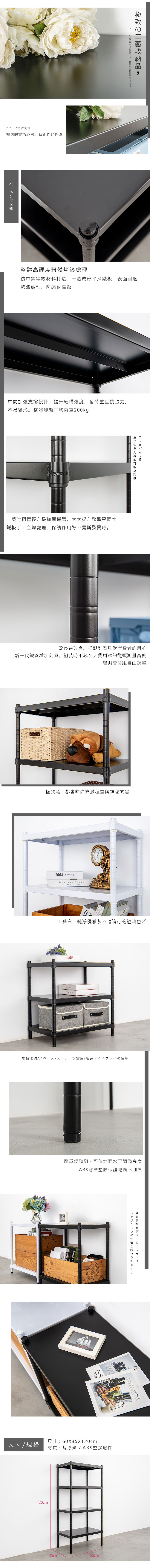 【dayneeds】極致工藝 60x35x120公分 四層烤黑鐵板層架