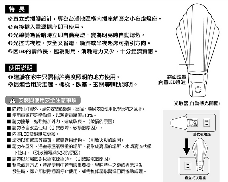 PRACTICAL 實用牌 貝殼感光小夜燈 台灣製造 PR-Y304