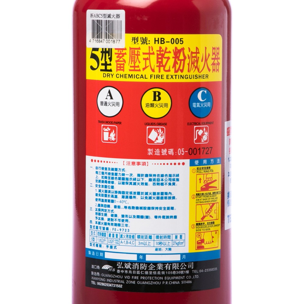 新制 5磅 乾粉滅火器 型號HB-005