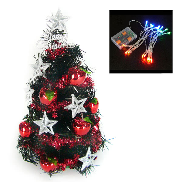 ※本商品包括一株1尺聖誕樹與如圖搭配之全套吊飾 + LED20燈電池燈