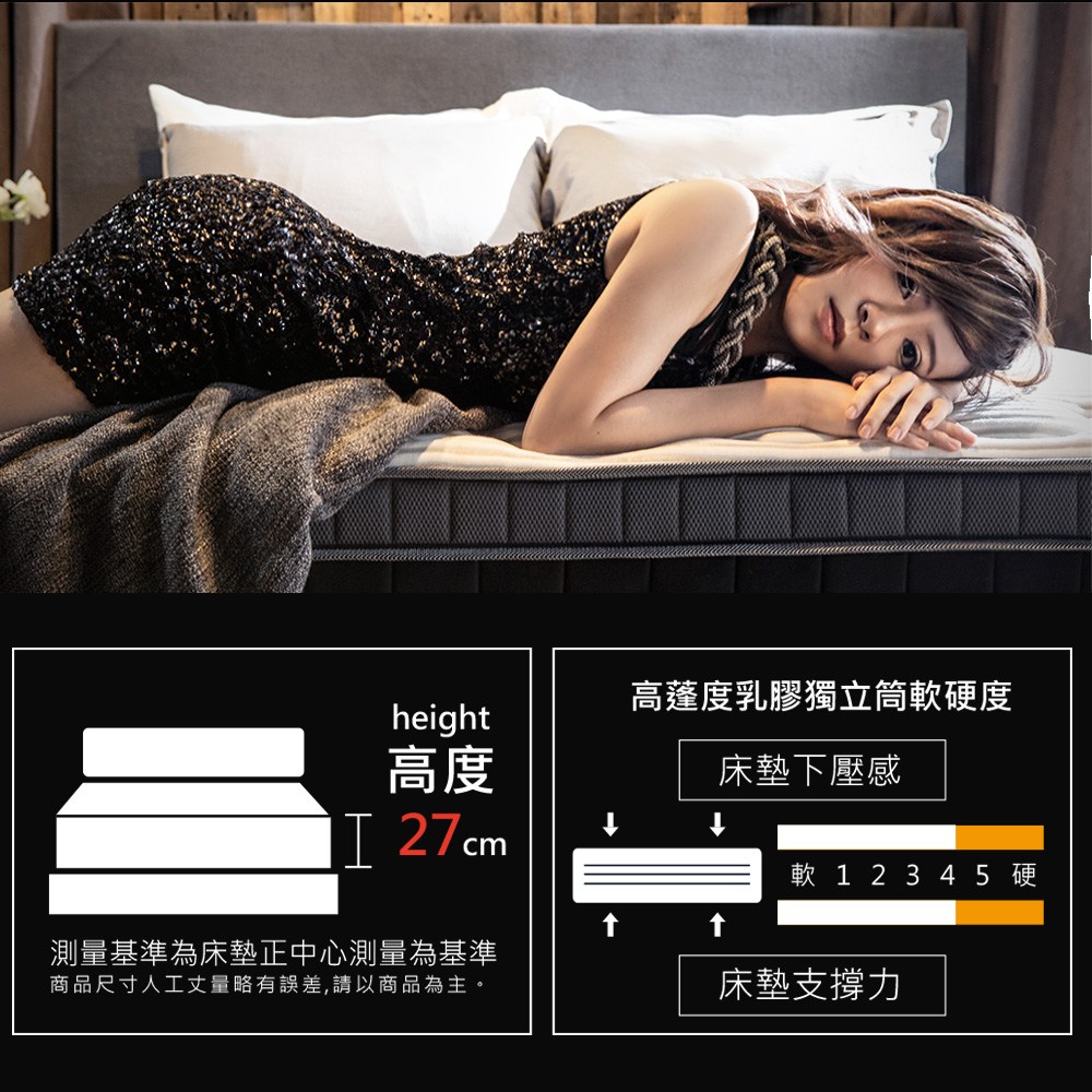 【obis】Divas名伶系列_高蓬度乳膠獨立筒無毒床墊雙人加大6X6.2尺(27cm)