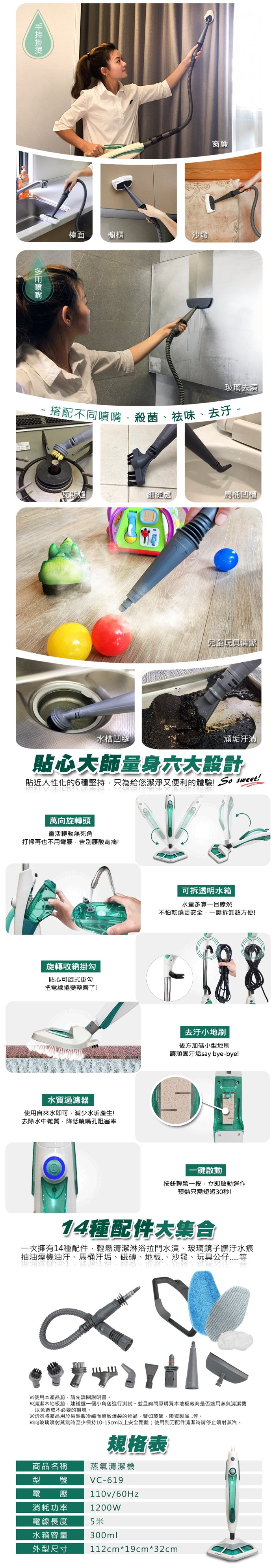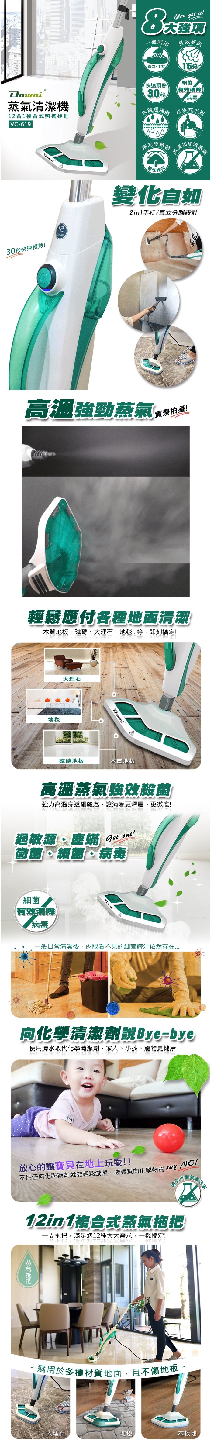 Dowai多偉直立/手持 12合1複合式蒸氣拖把 VC-619