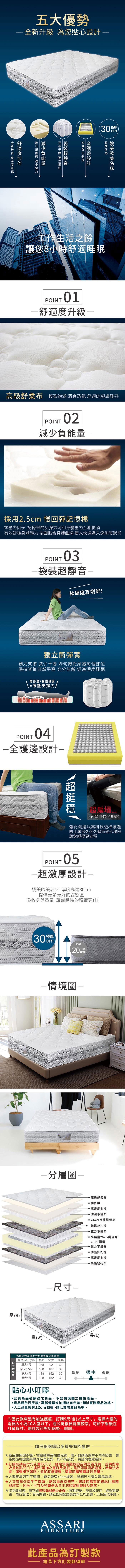 ASSARI-舒眠高彈力支撐四線獨立筒床墊-單大3.5尺單大3.5尺