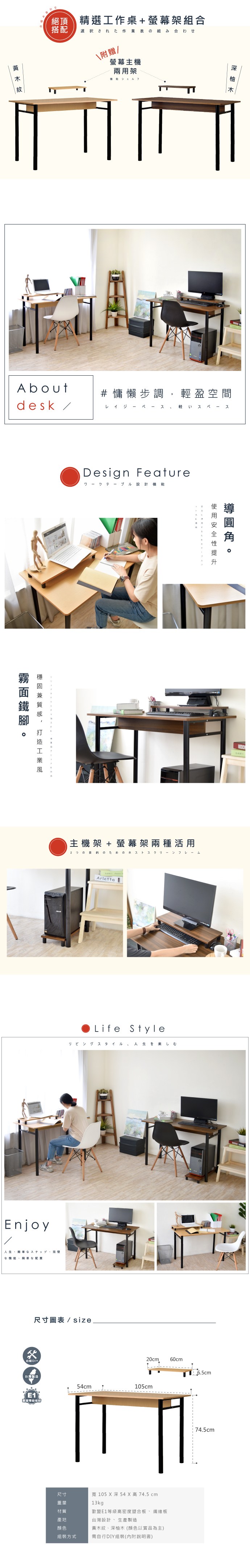 【RICHOME】超實惠簡單工作桌胡桃木色