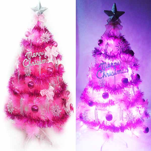 ※本商品出貨包括一株台灣 6尺特級粉紅色松針葉聖誕樹+如圖搭配之全套裝飾配件包 (共計 110 件中型配件) + 2串100燈LED燈聖誕燈串 (粉紅白光) (LED燈泡)(此為插電式燈串)