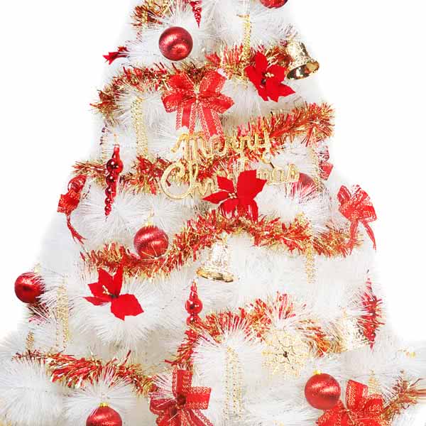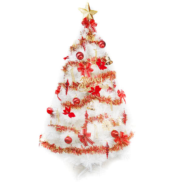 【摩達客】台灣製6尺(180cm)特級白色松針葉聖誕樹(紅金色系配件)(不含燈)