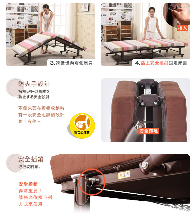 ・操作折疊與展開床面時,請務必小心謹慎