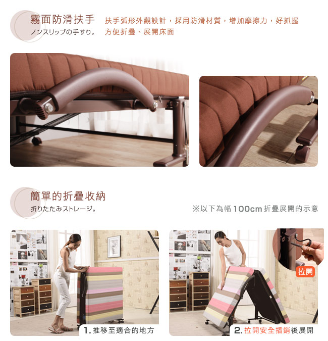 ◆ 免安裝,簡單折疊與展開床面