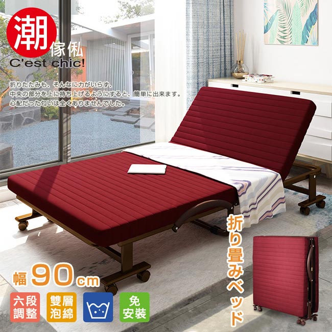 【C'est Chic】哲學之道6段收納折疊床-幅90cm(可拆洗免安裝)-酒紅