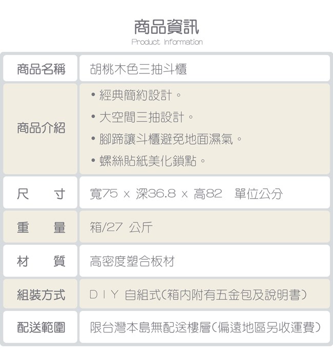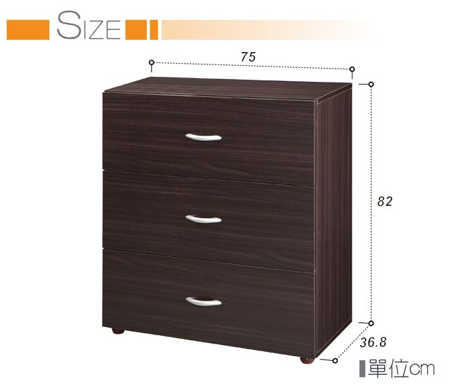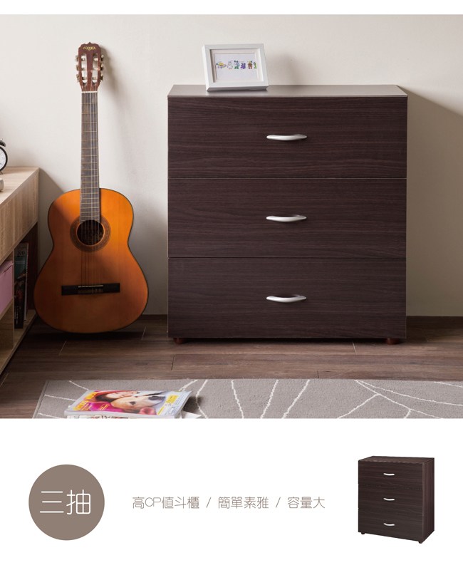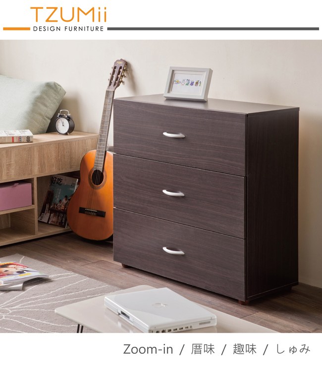 【TZUMii】簡約三抽斗櫃-胡桃木色胡桃木色