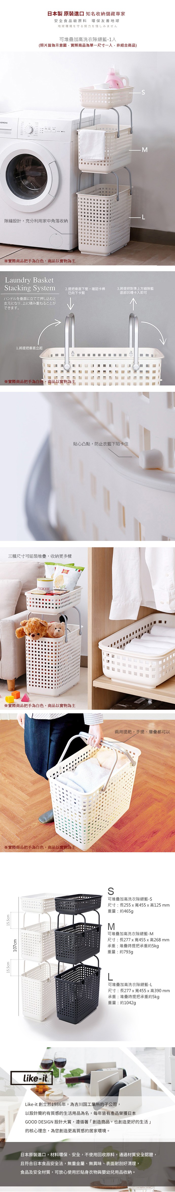 【日本like-it】日製可堆疊加高洗衣隙縫籃-L-白