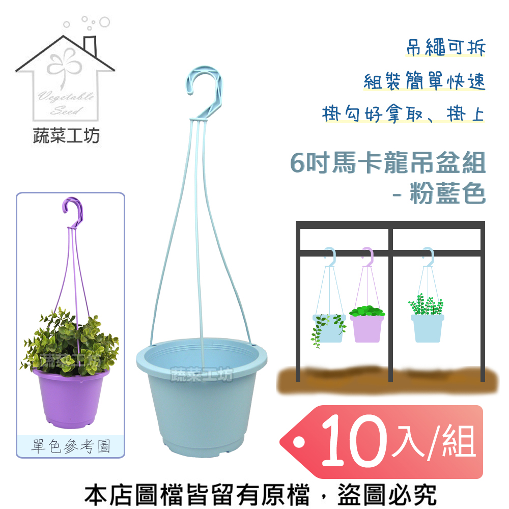 名稱:6吋馬卡龍吊盆組 - 粉藍色 - 10入/組
