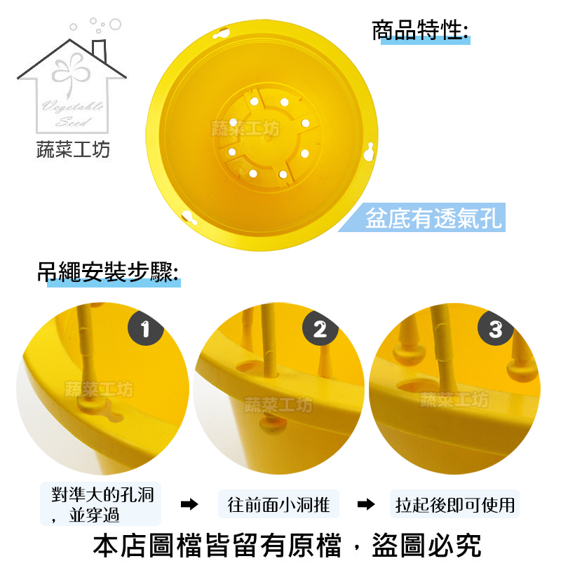 規格:盆外直徑約17cm 盆內直徑約14.8cm 高約11.5cm 底約10.9cm 吊繩約38.5cm 掛勾寬度約2.9cm