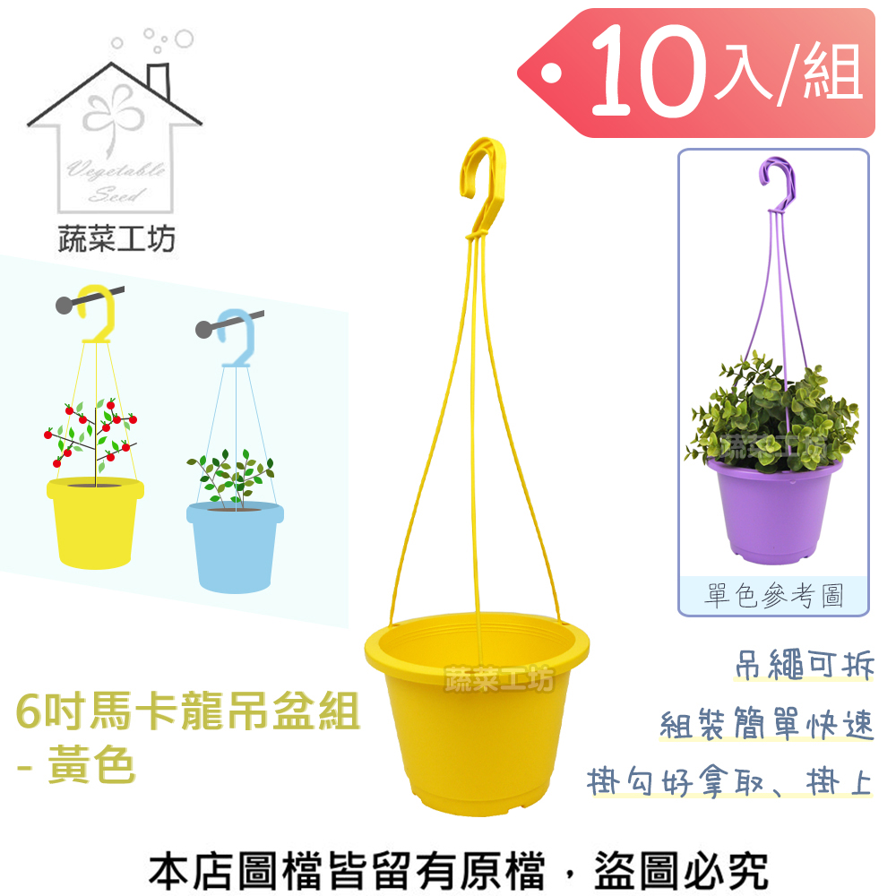 名稱:6吋馬卡龍吊盆組 - 黃色 - 10入/組