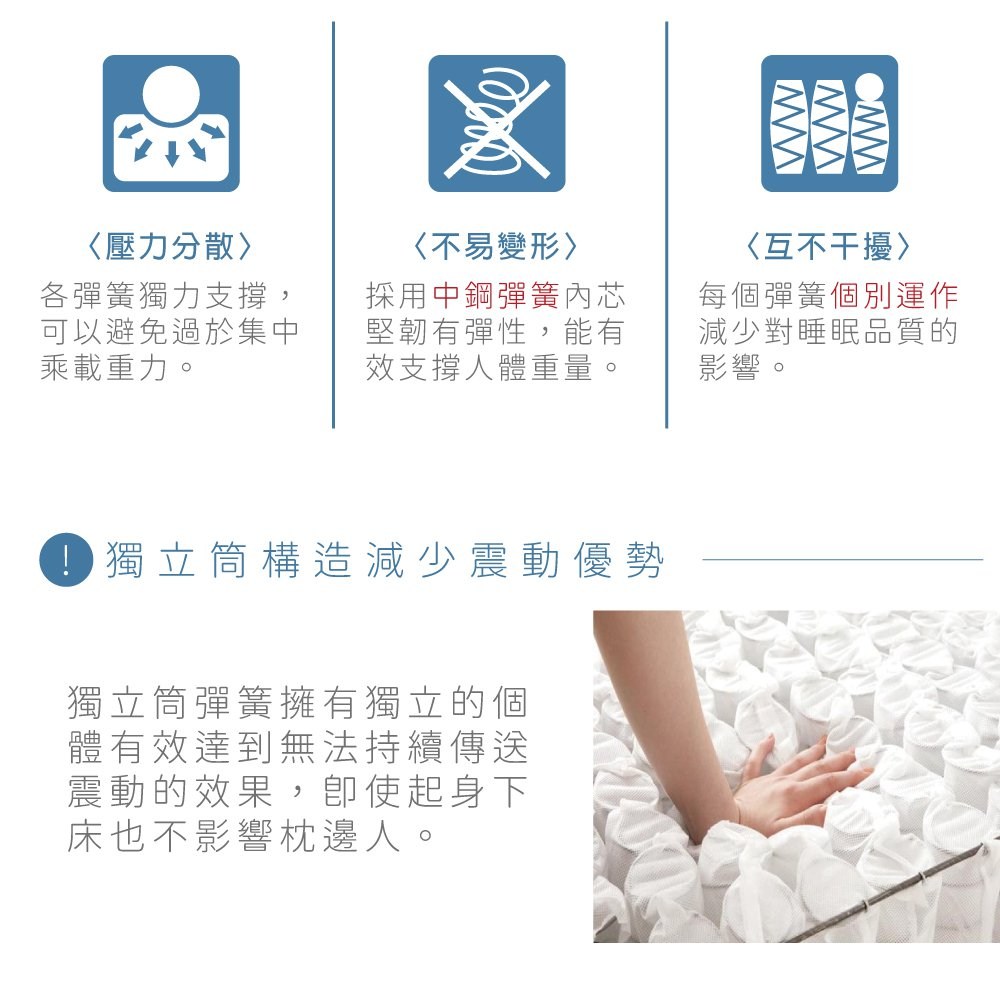 RICHOME 貝奈斯三線獨立筒床墊 床墊 獨立筒 三線床墊 單人加大 雙人床墊 3.5呎5呎6呎 BE17-1