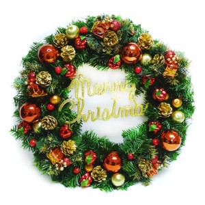 本商品包括 : 一個20聖誕花圈+如圖搭配之飾品(出貨時已搭配完畢,無須自行組裝)