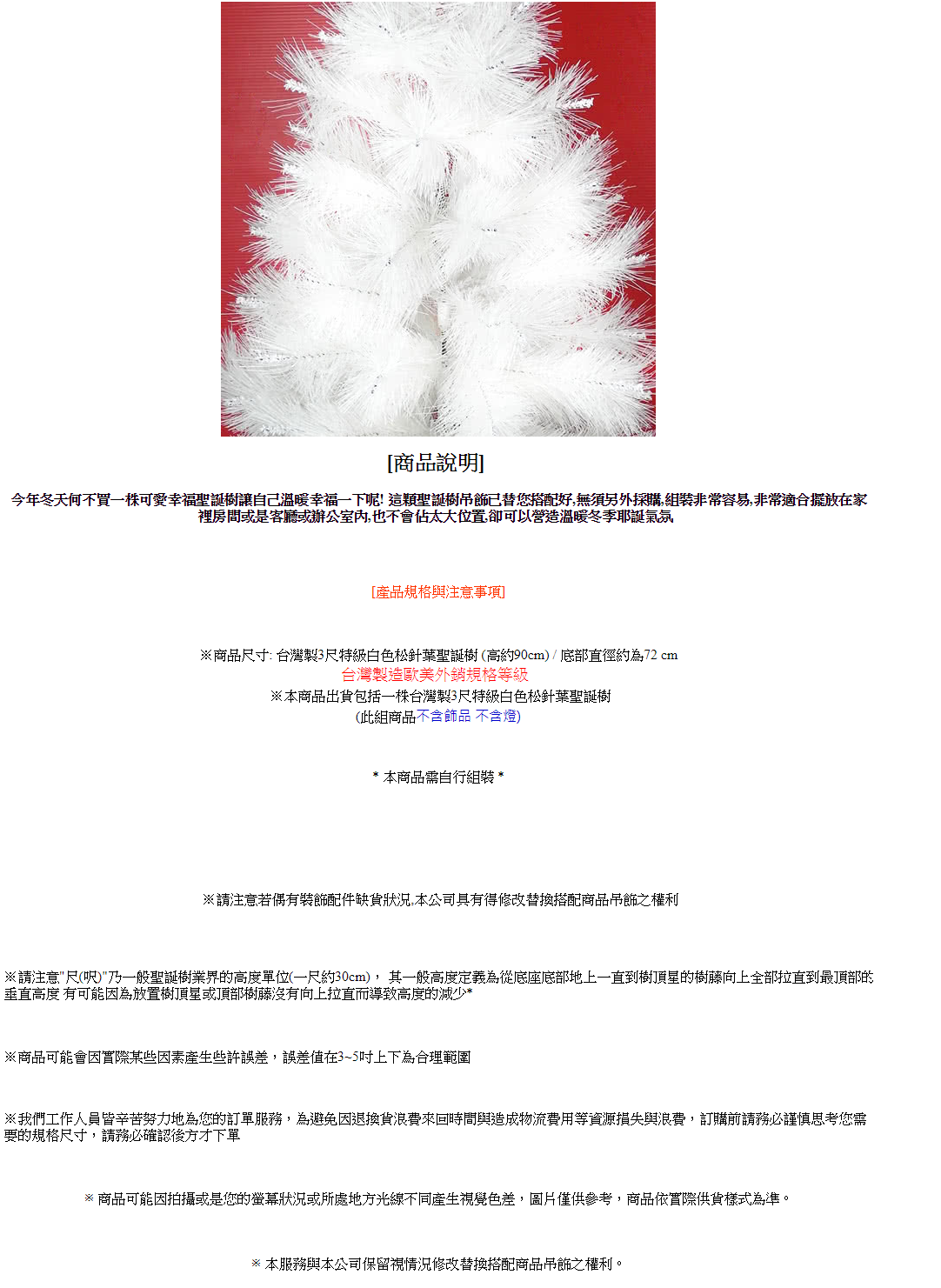 摩達客耶誕★台灣製3尺/3呎(90cm)特級白色松針葉聖誕樹裸樹 (不含飾品)(不含燈) (本島免運費)