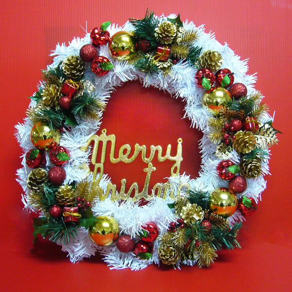 【摩達客】台灣製20吋時尚優雅白色聖誕花圈(紅金色系)