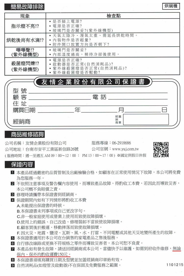 若需維修保固請撥打原廠電話。