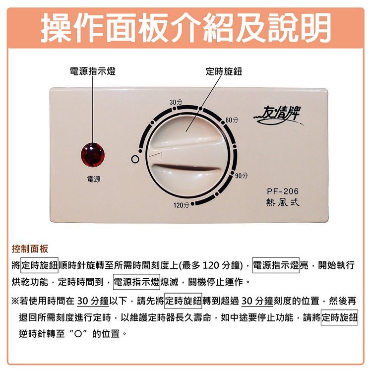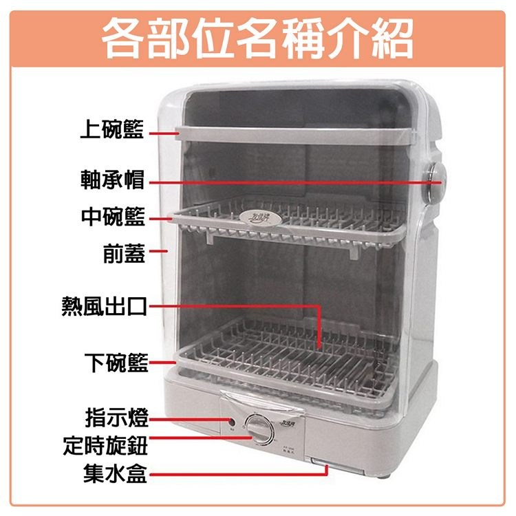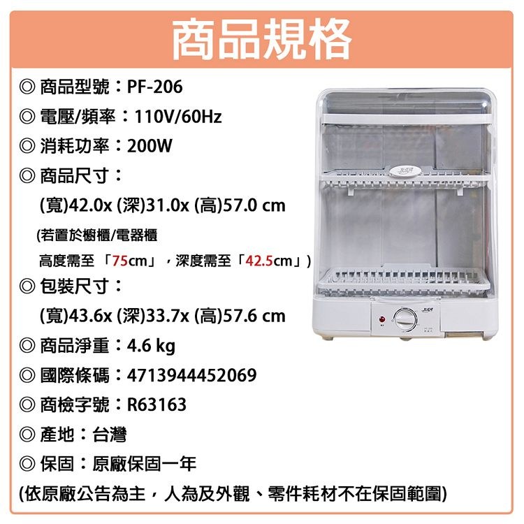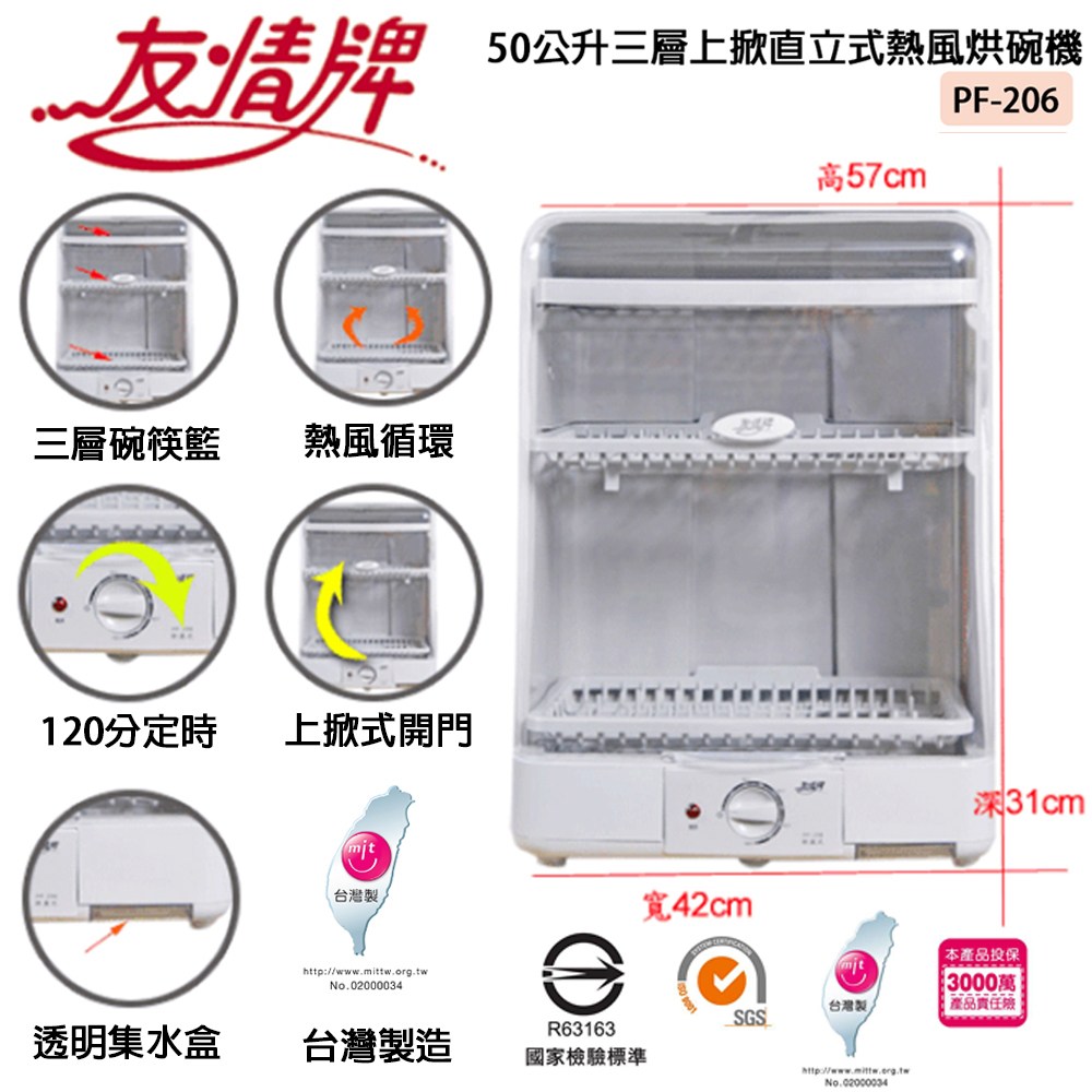 友情牌 50公升三層上掀直立式熱風烘碗機 PF-206