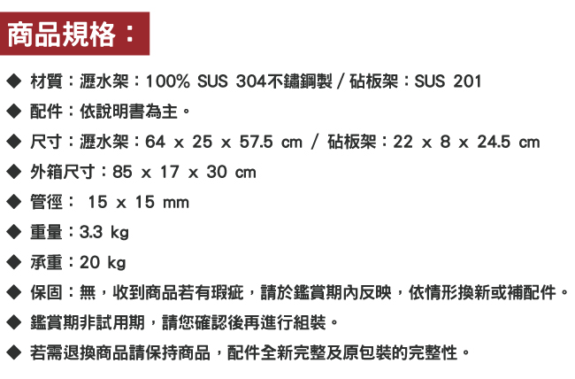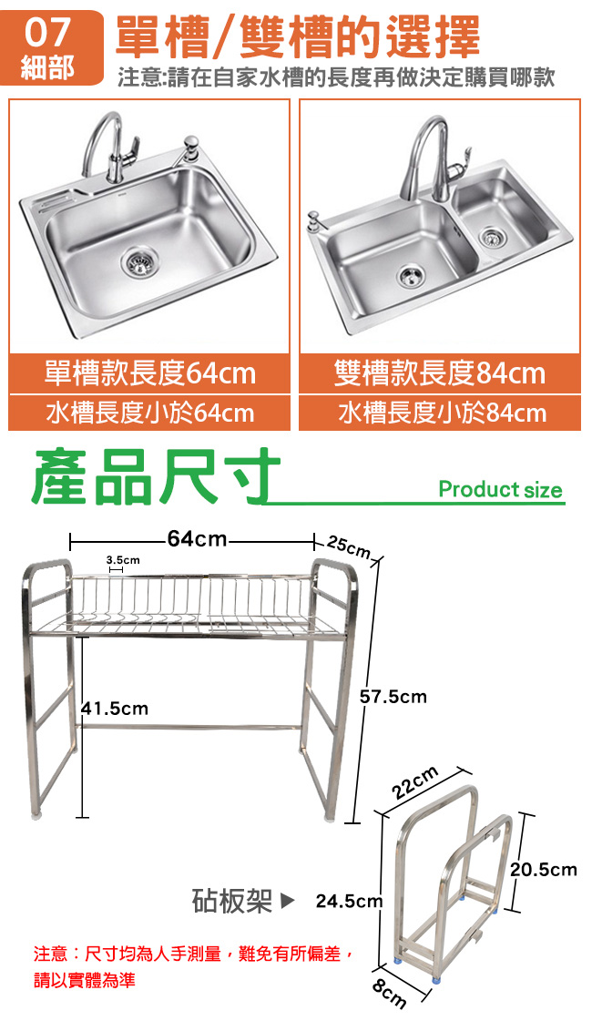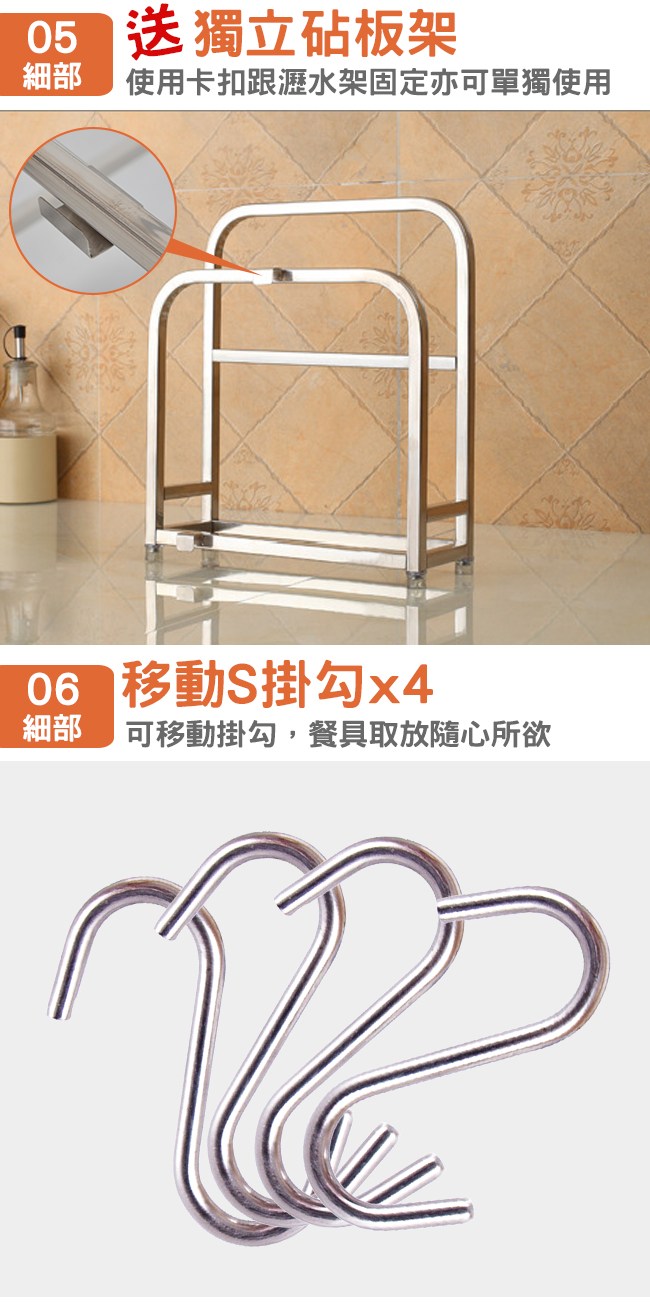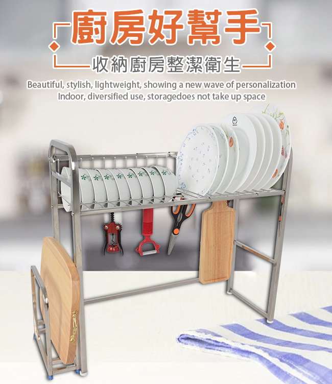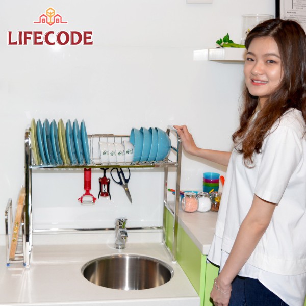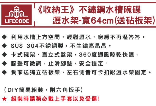 LIFECODE《收納王》不鏽鋼水槽碗碟瀝水架-寬64cm(送砧板架)