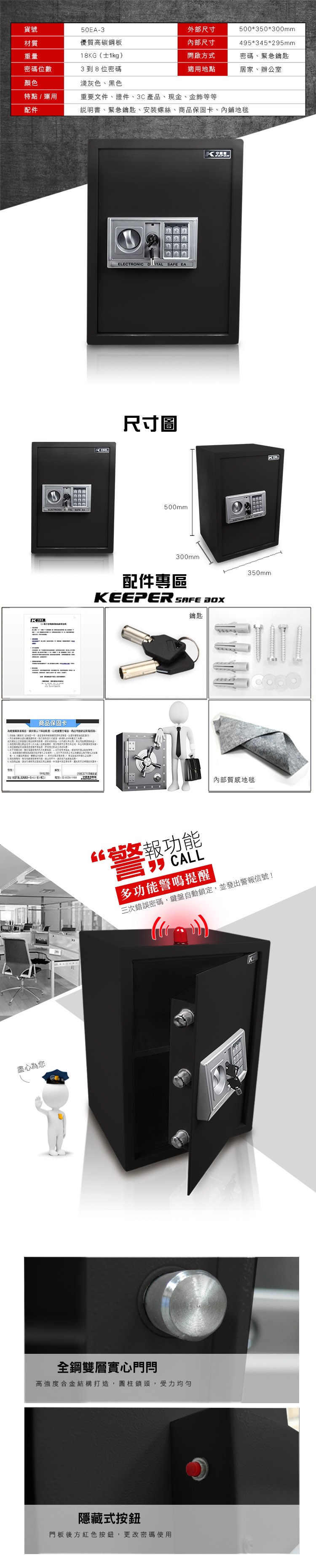 【守護者保險箱】升級款 密碼+鑰匙 電子 保險箱 保險ˋ櫃 收納櫃 50EAK黑色