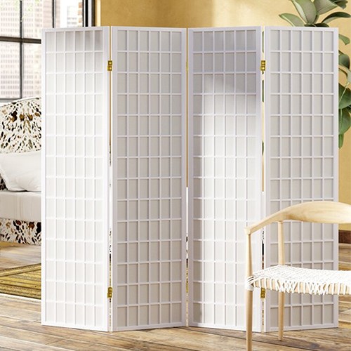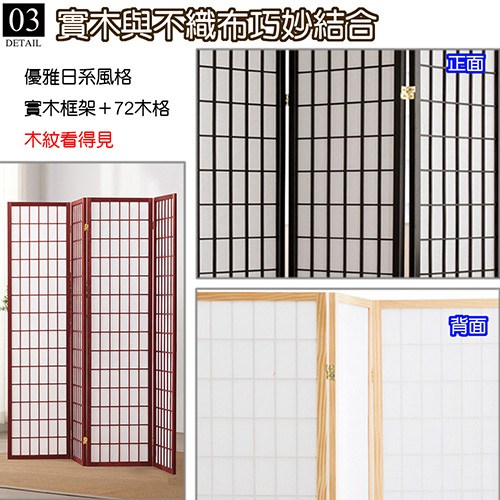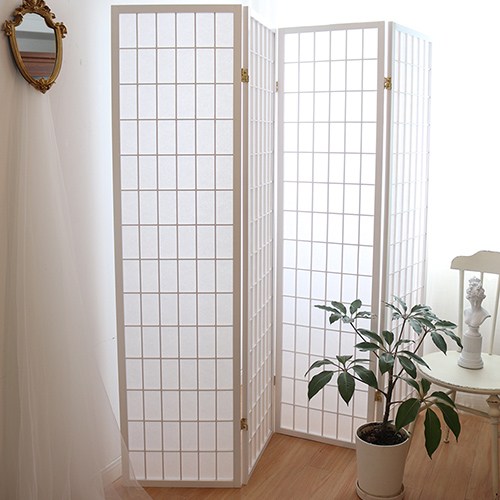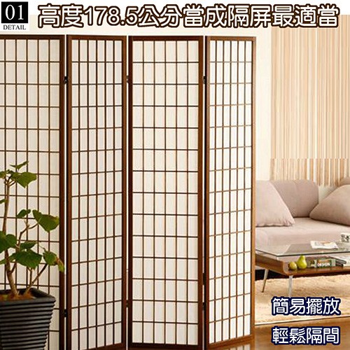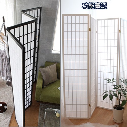 天然木格搭配高質感純白 不織布,比起傳統的和紙更不易破,透光性佳可適度採光 ,輕易營造出中式或和風的風情, 可任意折合的特殊五金,想怎麼折都可以, 各種角度皆可調整,能夠讓四面屏風依您的需要做成任何造型來擺放,屏風也變成是一種裝飾,輕易提升居家氛圍。不使用的時候,也可以 輕鬆折合快速收納,牆角、床底、沙發底下都能收納不占空間。