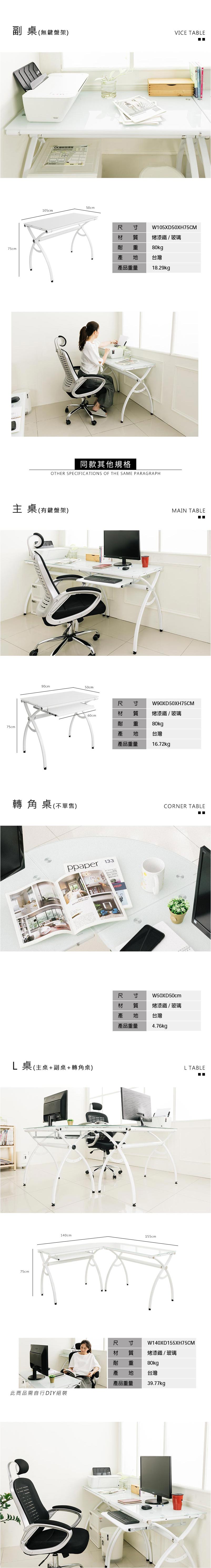 【dayneeds】白吉林 8mm強化玻璃 L 型轉角電腦桌白吉林