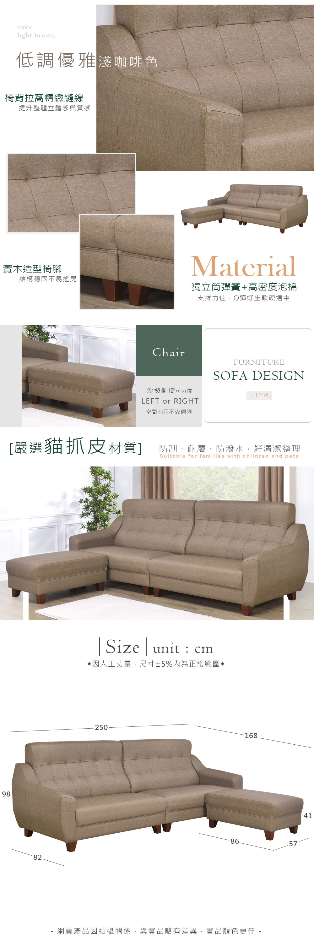 ● 實木造型椅腳,結構穩固不易搖晃,提升整組沙發的精緻感