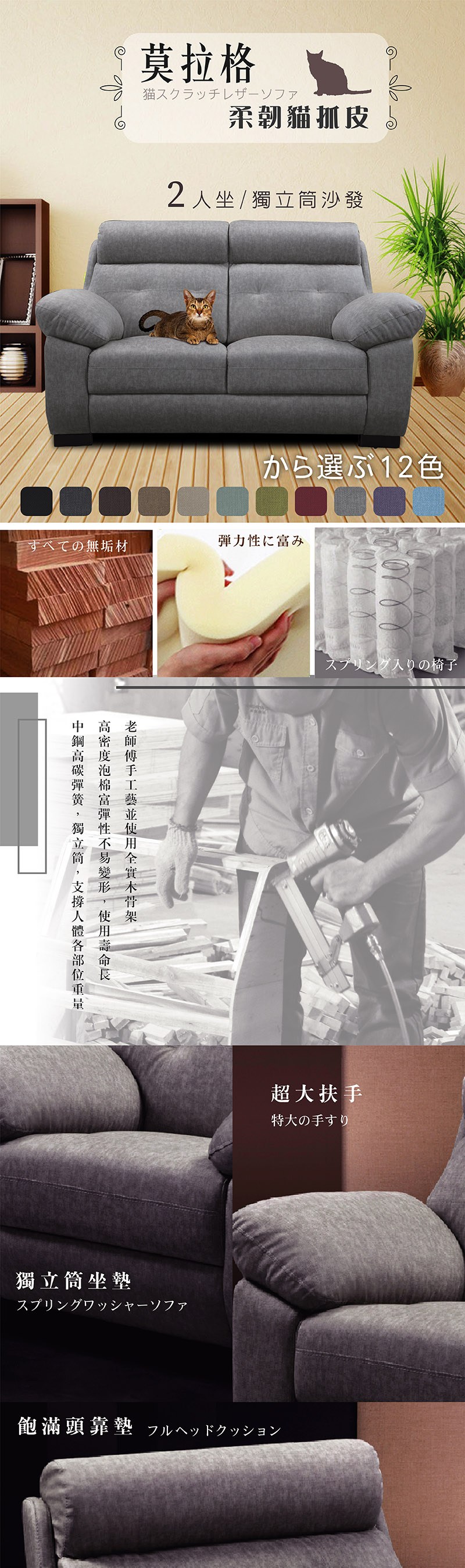 【IHouse】莫拉格 柔韌貓抓皮獨立筒沙發 2人座