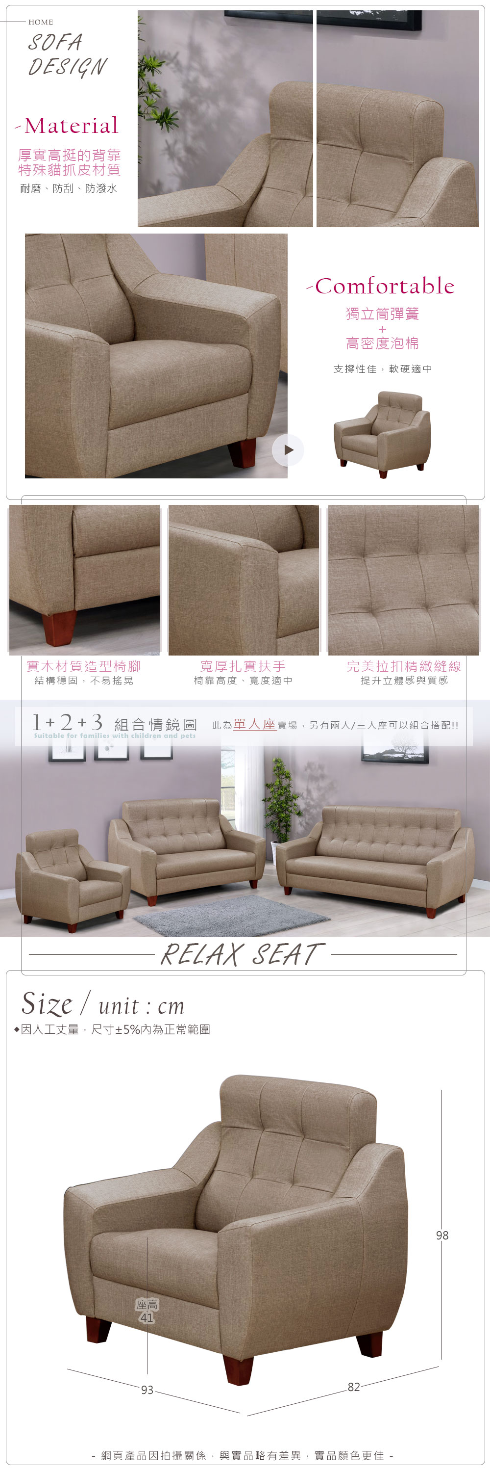 ● 實木造型椅腳,穩固支撐不易搖晃,提升整組沙發的精緻感