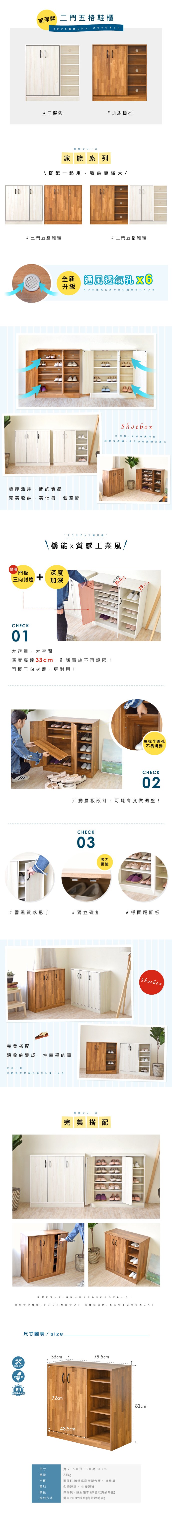 HOPMA家具 摩登三門五層鞋櫃 台灣製造 玄關收納櫃 置物邊櫃 鞋架-寬76 x深32 x高85.5cm;內徑深度30.5cm