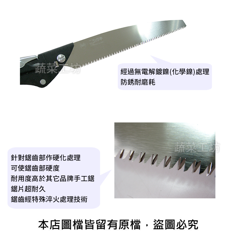 針對鋸齒部作硬化處理.可使鋸齒部硬度.耐用度高於其它品牌手工鋸