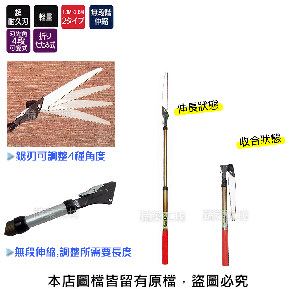 商品名稱:伸縮式剪定鋸(全長: 0.87~1.3m)N-752(日本原裝進口NISHIGAKI西垣螃蟹牌)