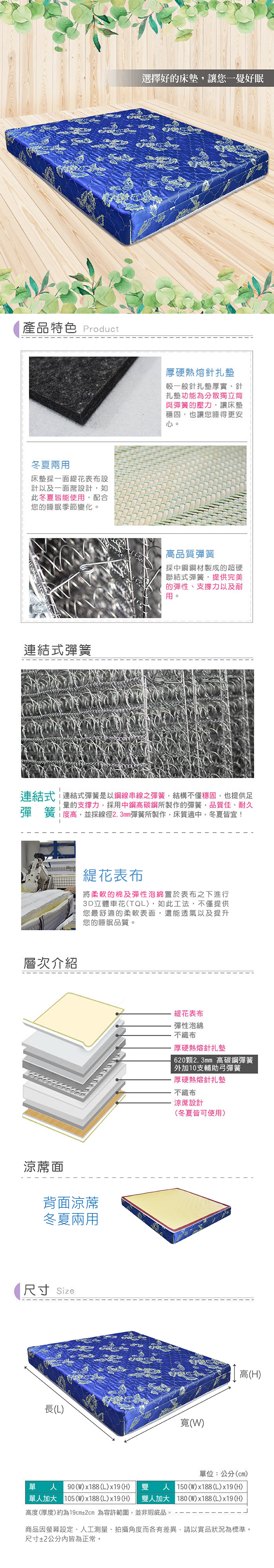 【卡莉絲名床】森和竹纖雙線獨立筒床墊(3.5尺單人)