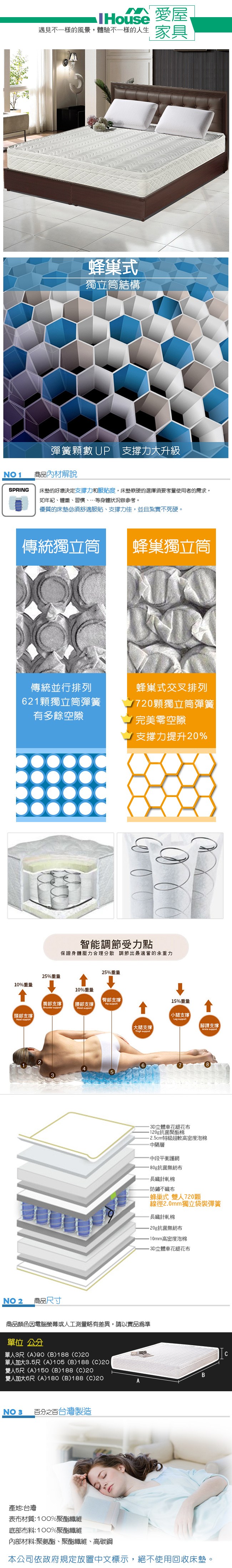 【obis】晶鑽系列_MONET三線蜂巢乳膠獨立筒無毒床墊雙人特大6*7尺_活