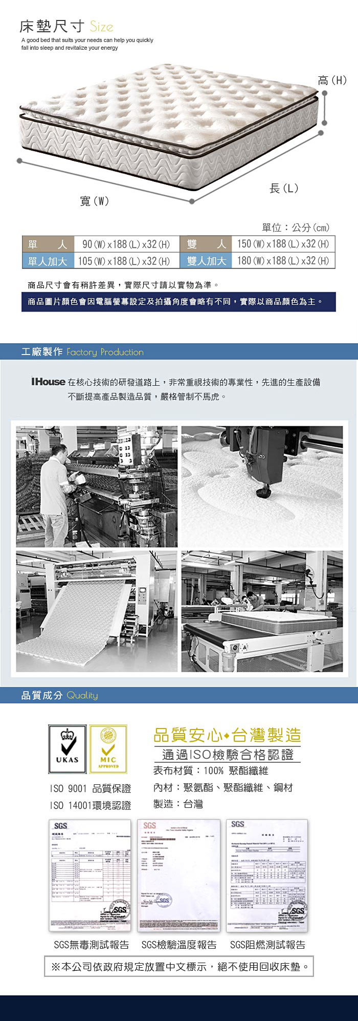 Jenny Silk.3M環保透氣.蜂巢式超硬床墊.加大單人.全程臺灣製造