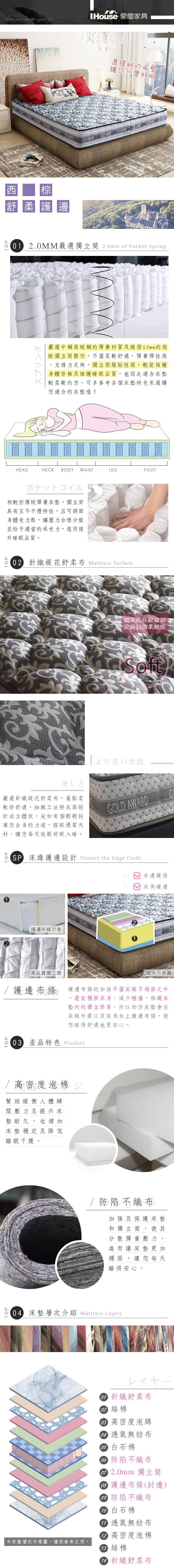MG珍寶-3M防潑水抗菌高澎度-護邊蜂巢獨立筒床墊-雙人加大6尺