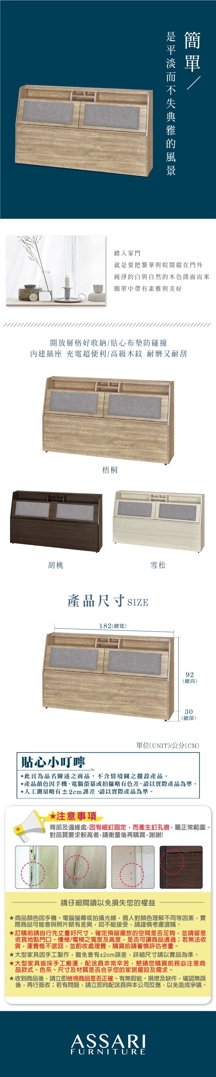 ASSARI-杉原收納插座布墊床頭箱(雙大6尺)梧桐
