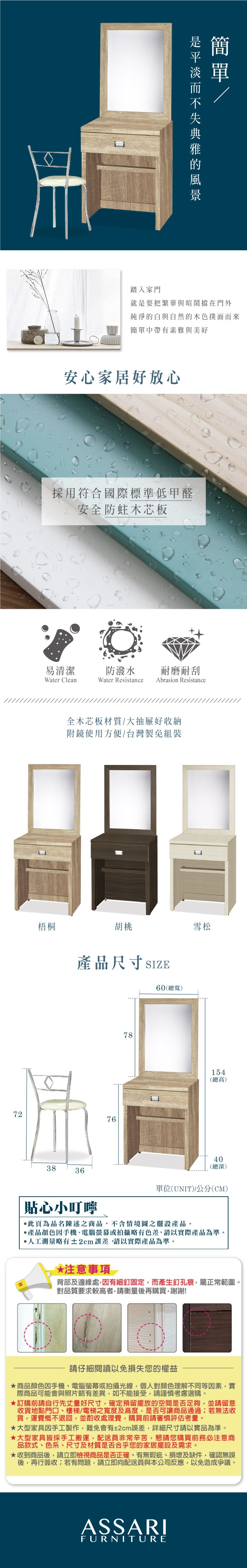 ASSARI-安迪2尺化妝桌椅組(寬60x深40x高154cm)雪松