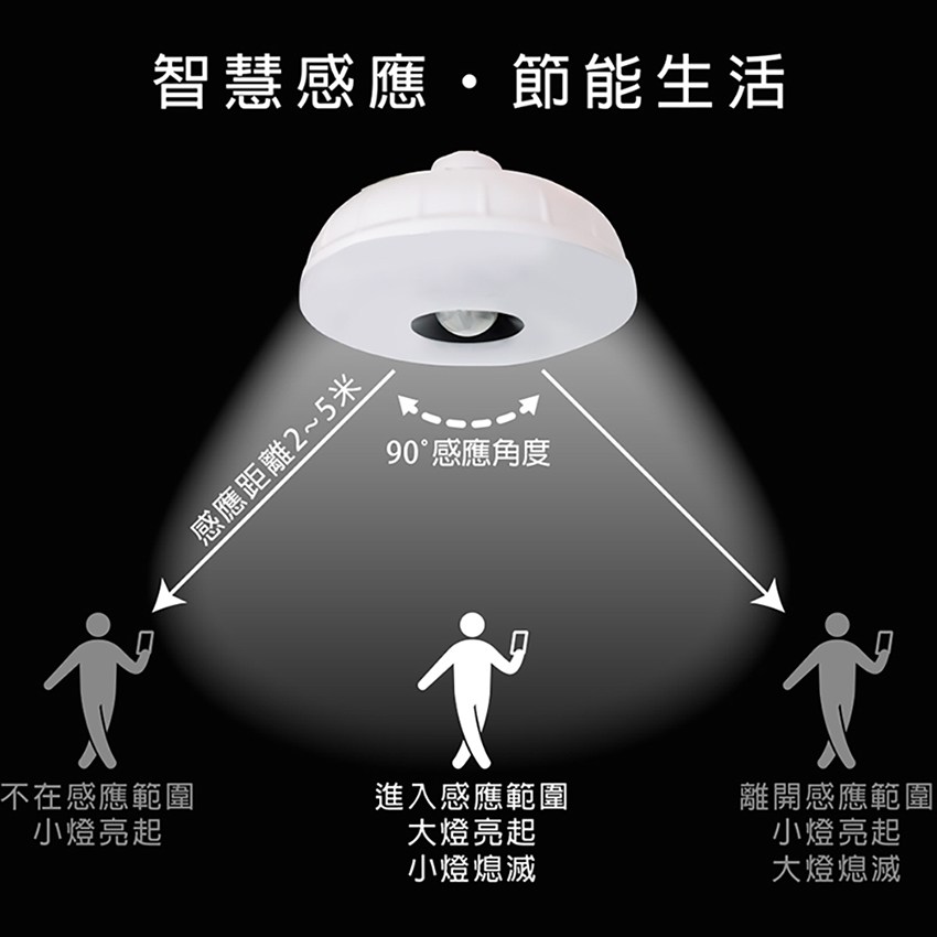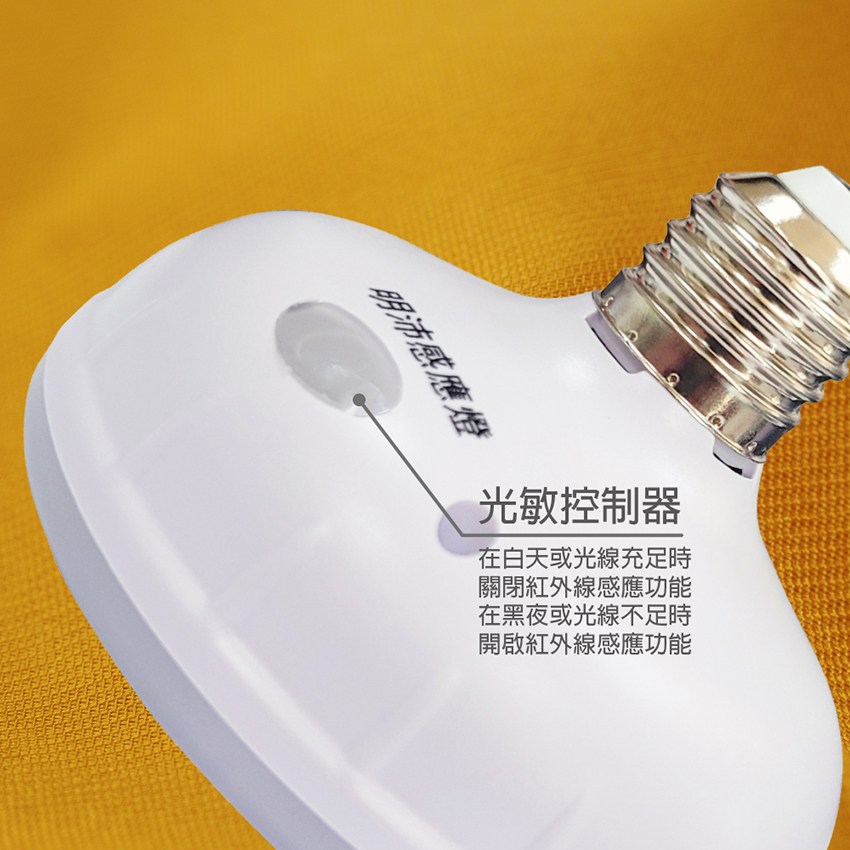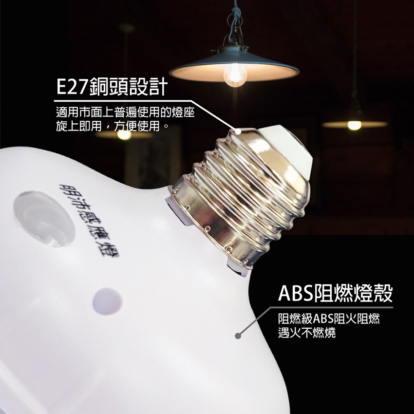 B 紅外線感應大燈:人體紅外線+光控感應,昏暗時人經過自動亮燈。 - 使用E27螺旋設計,旋上即可使用。