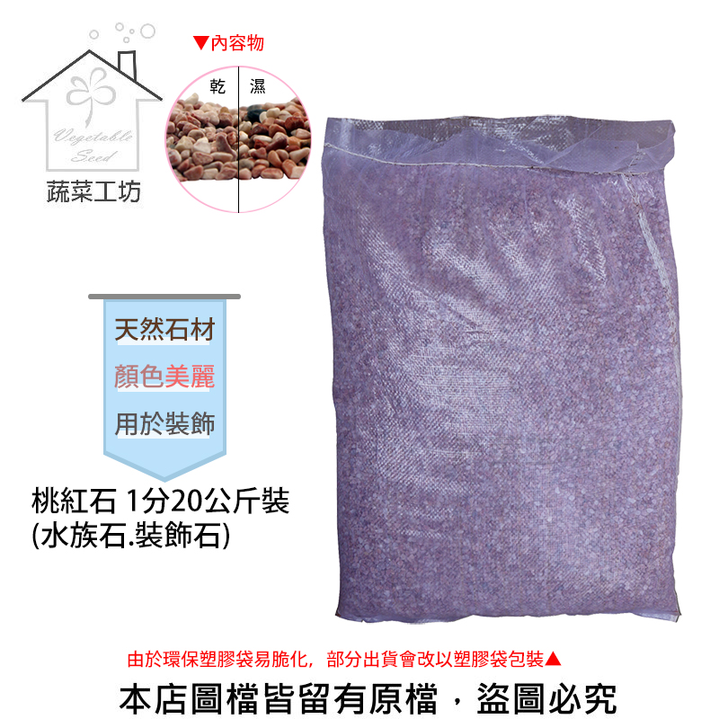商品名稱:桃紅石 1分20公斤±5%裝 (水族石.裝飾石)