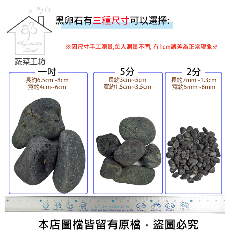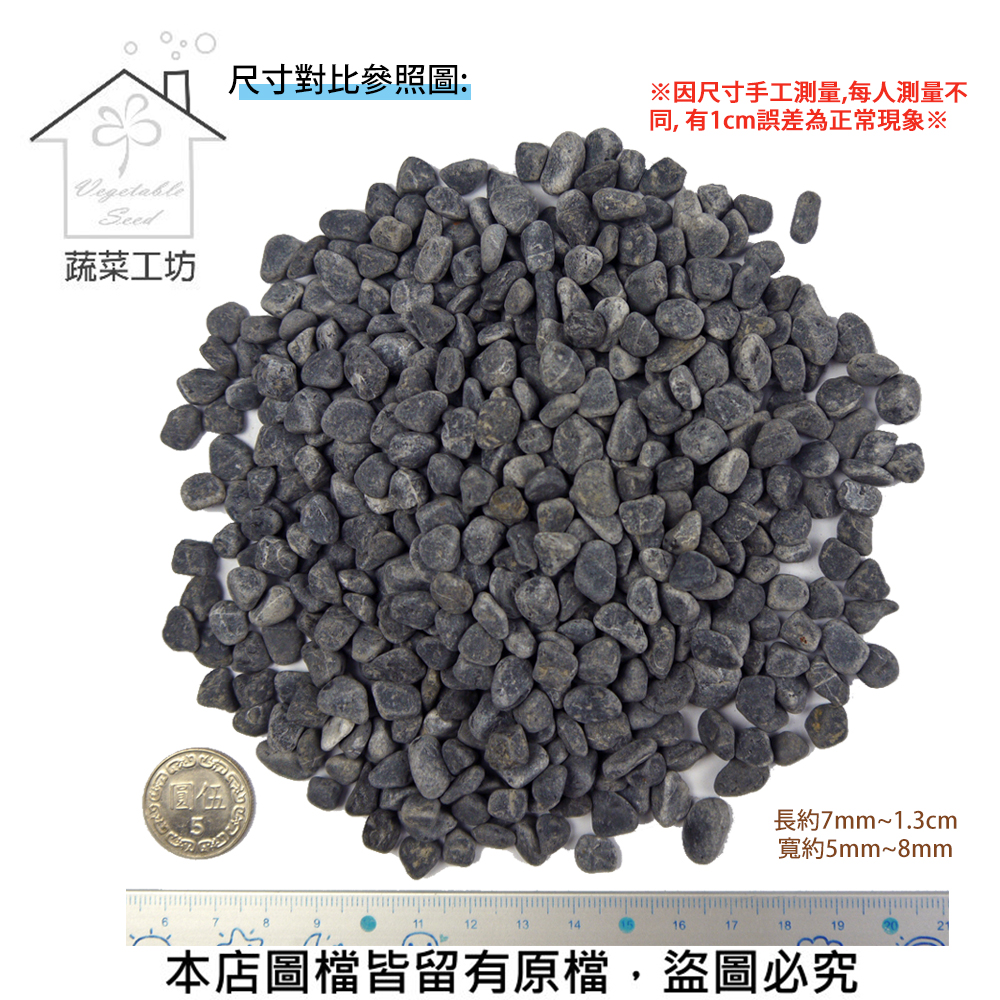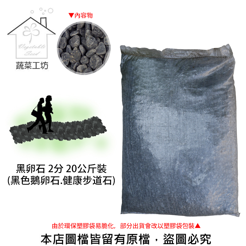 商品名稱:黑卵石 2分 20公斤±5%裝 (黑色鵝卵石.健康步道石)