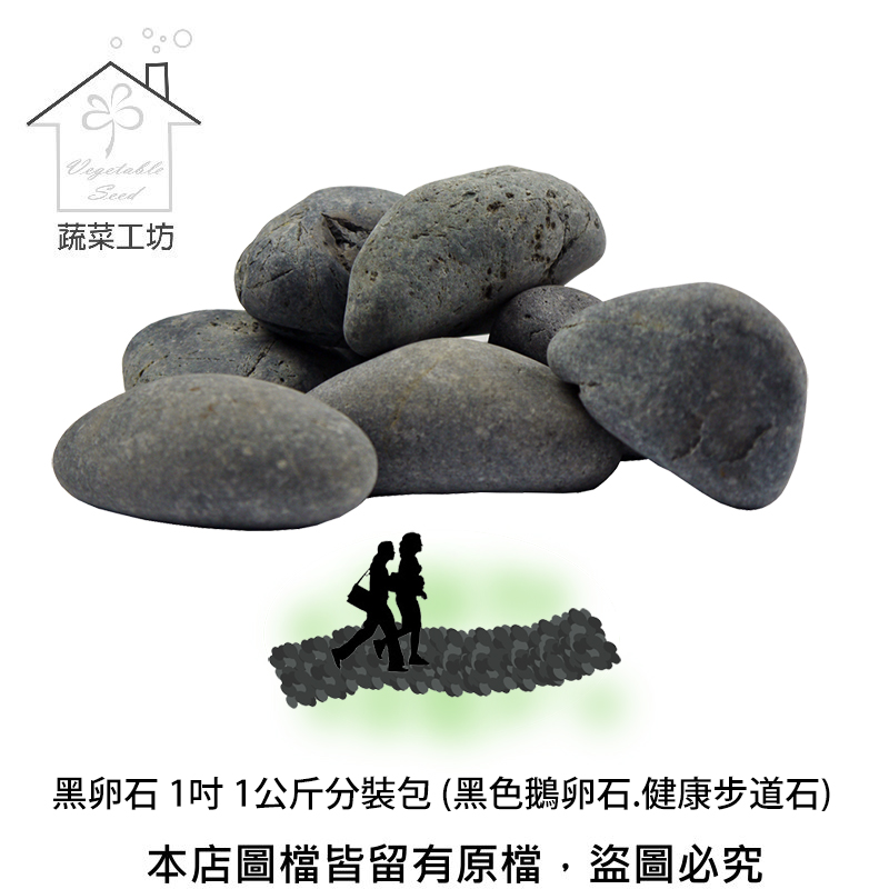 商品名稱:黑卵石 1吋 20公斤±5%裝 (黑色鵝卵石.健康步道石)