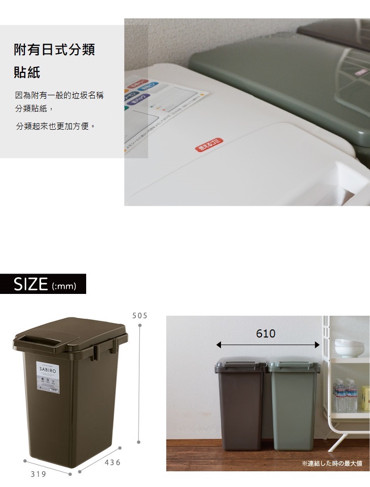 【日本RISU】SABIRO系列連結式環保垃圾桶33L-白色