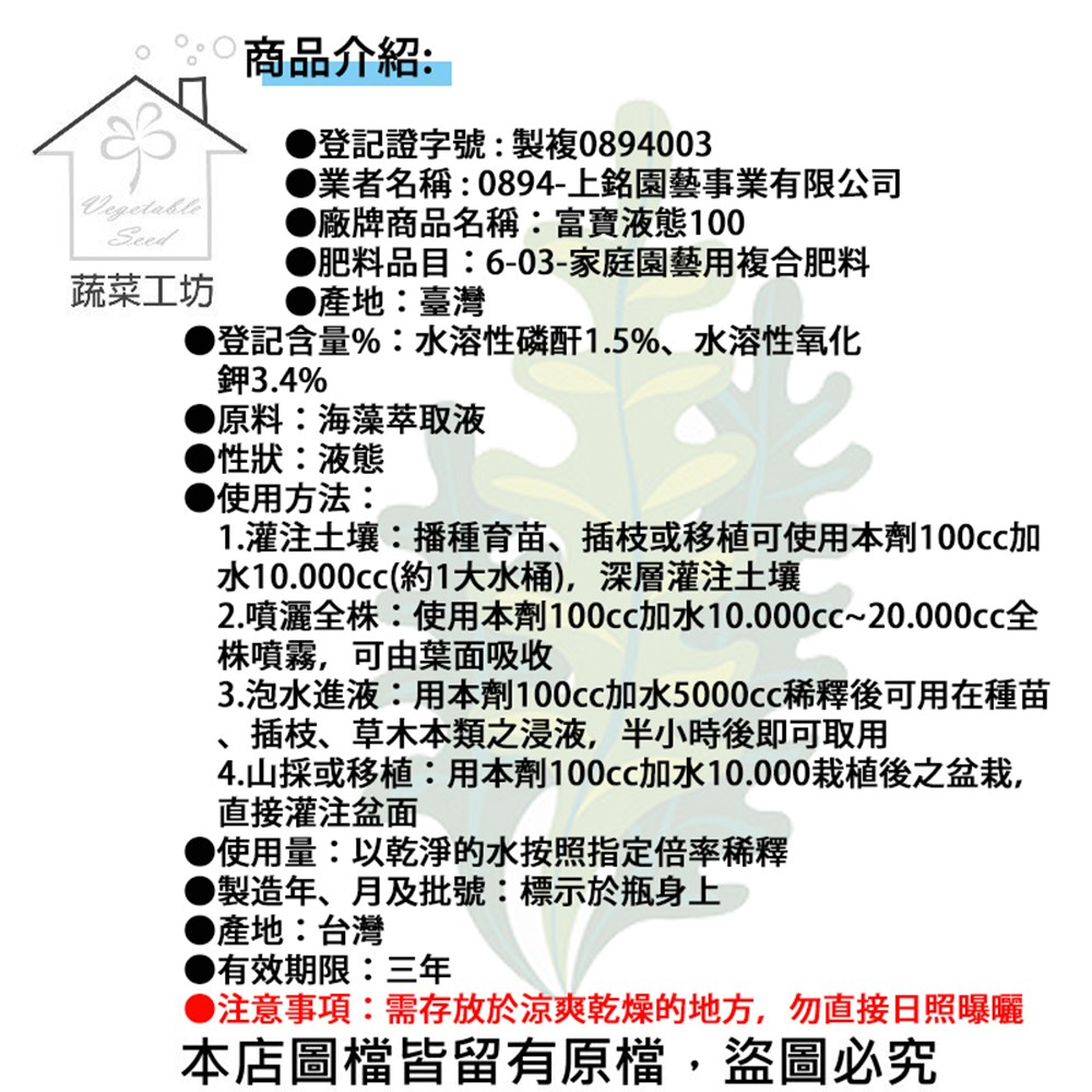 【蔬菜工坊】富寶液態100(原富寶開根100) 500CC